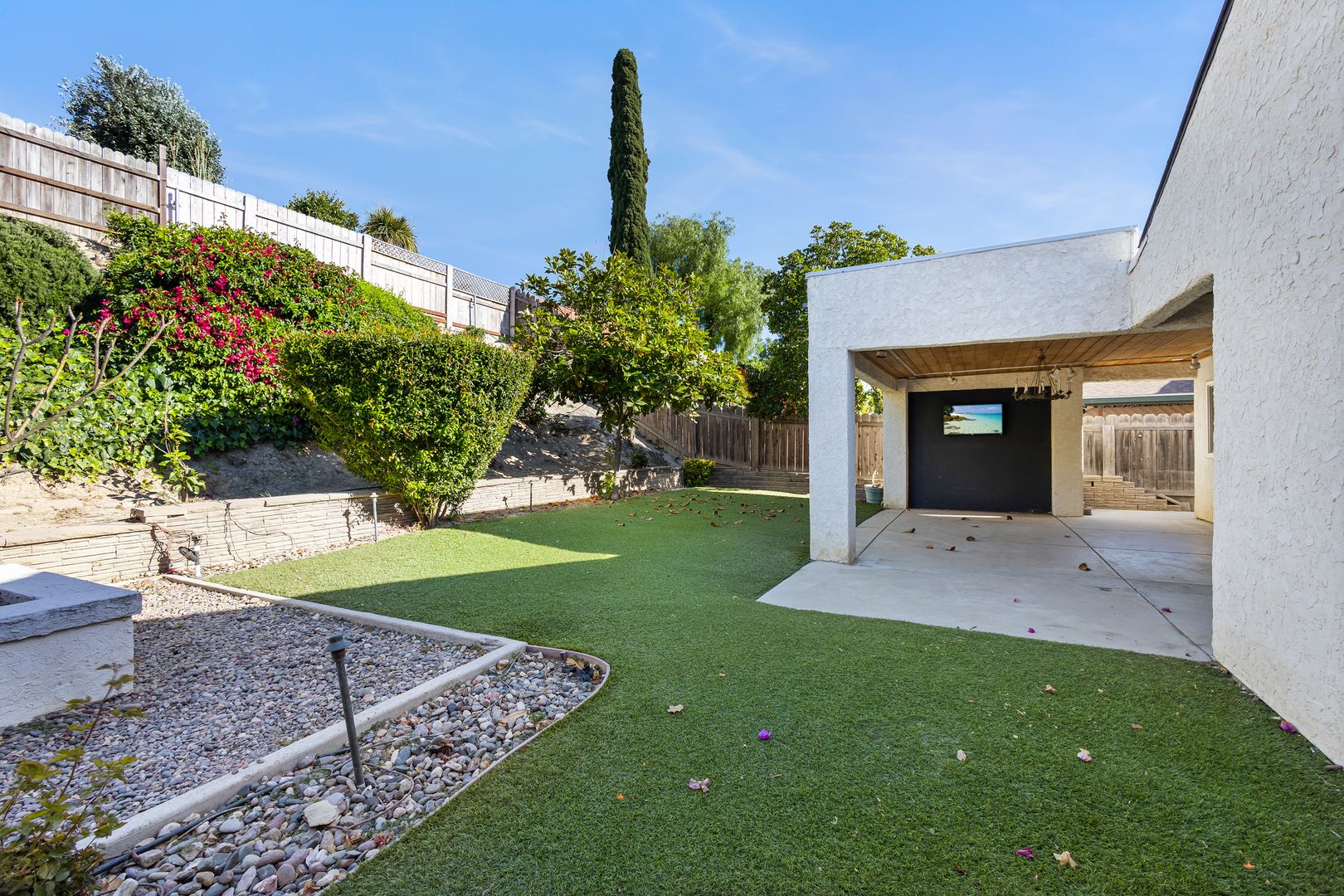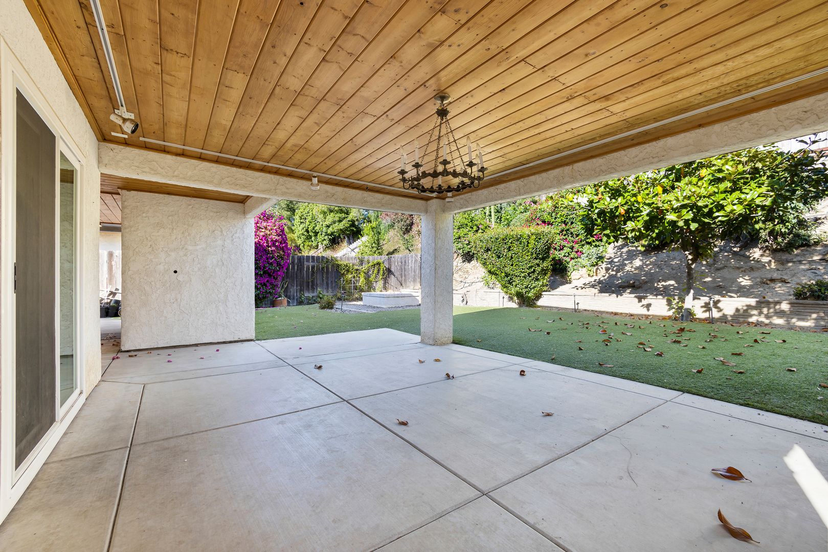 Beautiful 3 bedroom 2 bathroom home available NOW. This 1579 SQ/FT single level home is located in the Penasquitos Bluffs neighborhood. This home has neutral colored tile flooring throughout, dramatic high ceilings in the living room, central AC, ceiling fans throughout, and updated lighting. This home boasts a large living room, with lots of natural light and a fireplace. Additionally, you will find a dining room area, bright white kitchen, large bonus family room, 3 bedrooms, 2 bathrooms, attached 2 car garage with a full-size washer and dryer. The fully fenced backyard is an oasis with mature, lush landscaping, artificial turf, fire pit, and a beautiful, covered patio area.